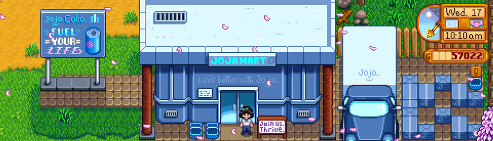 ห้างสรรพสินค้า ขายของคล้ายๆกับ Pierre's General Store แต่แพงกว่า และถ้าหากใครขี้เกียจหาของไปเคลียร์บันเดิ้ลใน Community Center สามารถสมัครสมาชิก Joja กับ Morris ได้ในราคา 5000g หลังจากนั้น Community Center จะถูกทุบทิ้งแล้วแทนที่ด้วยคลังเก็บของของ Joja  ซึ่งการเคลียร์บันเดิ้ลก็จะเปลี่ยนไปเป็นการจ่ายเงินให้กับ Morris เพื่อซ่อมสิ่งต่างๆในเมืองเเทน