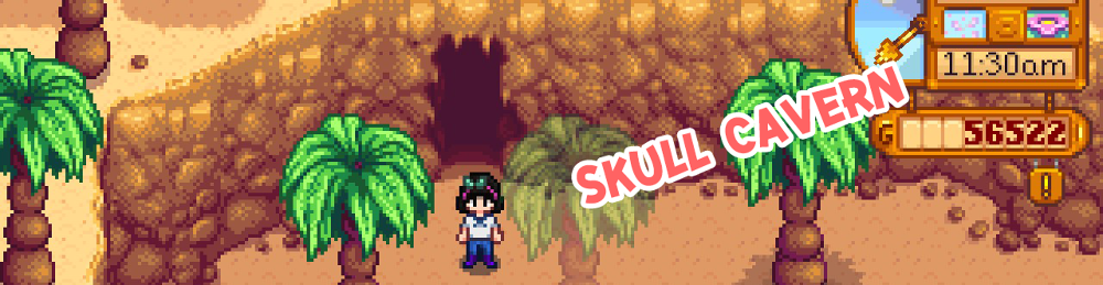 ถ้ำกระดูก ต้องใช้ Skull Key ที่ได้จากเหมืองชั้นที่ 120 เพื่อเข้าไป มอนสเตอร์ในนี้ถือว่าโหดมากเลยทีเดียว แถมไม่มีจำกัดชั้นอีก แต่ก็มีของดีๆเพียบ เป็นแหล่งหา Iridium Ore ที่ดีที่สุดเลยล่ะ