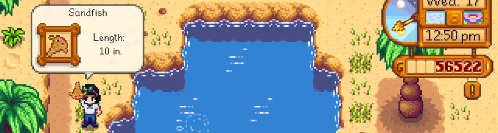 บ่อน้ำที่นี่เป็นที่เดียวที่สามารถตก Scorpion Carp และ Sandfish ที่เอาไว้ไปใส่ใน Fish Tank Bundles ใน Community Center ได้