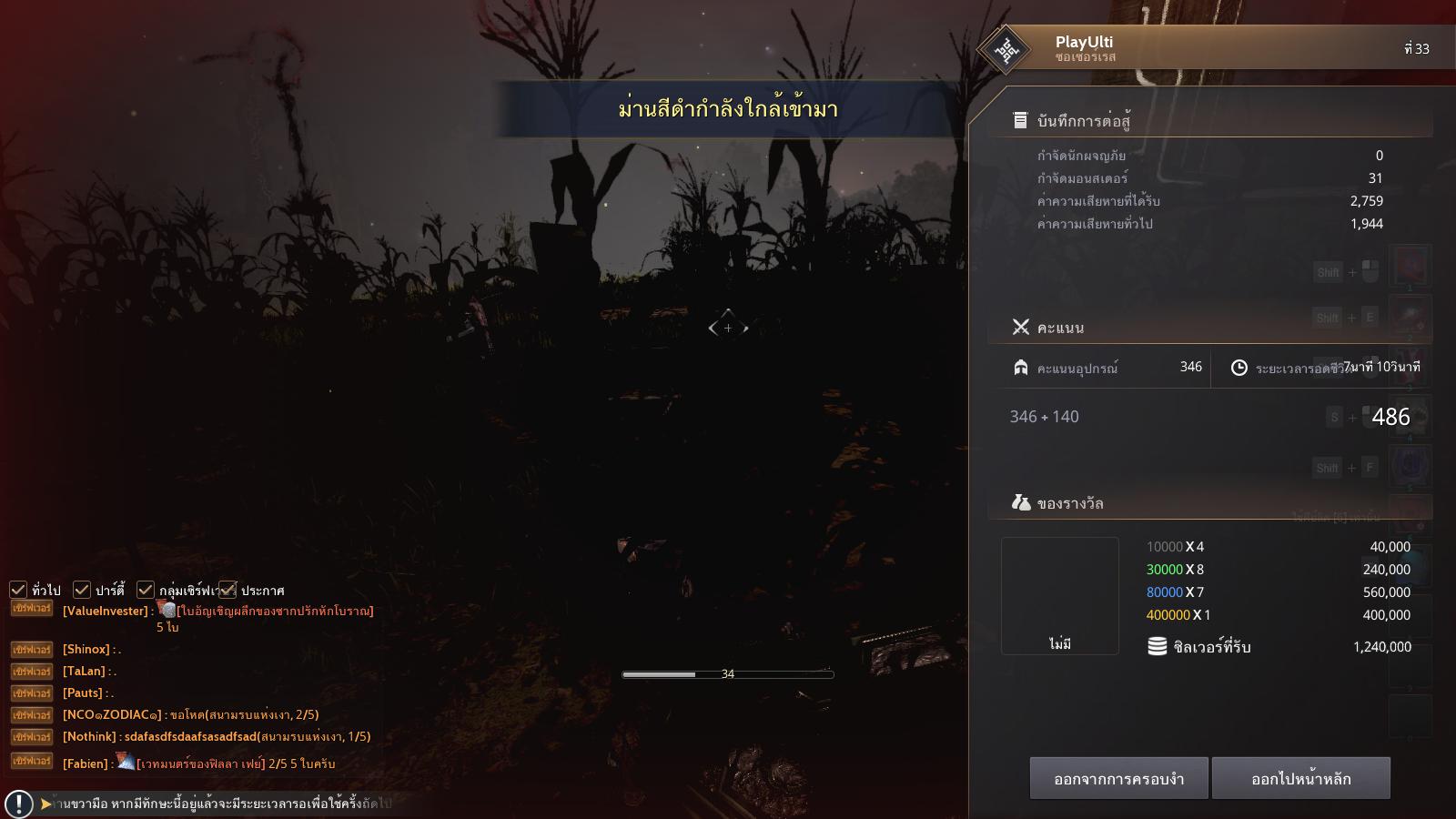 ● ผู้เล่นที่รอดชีวิตติดอันดับที่ 2 จะได้รับก้อนหินสีดำส่องประกาย