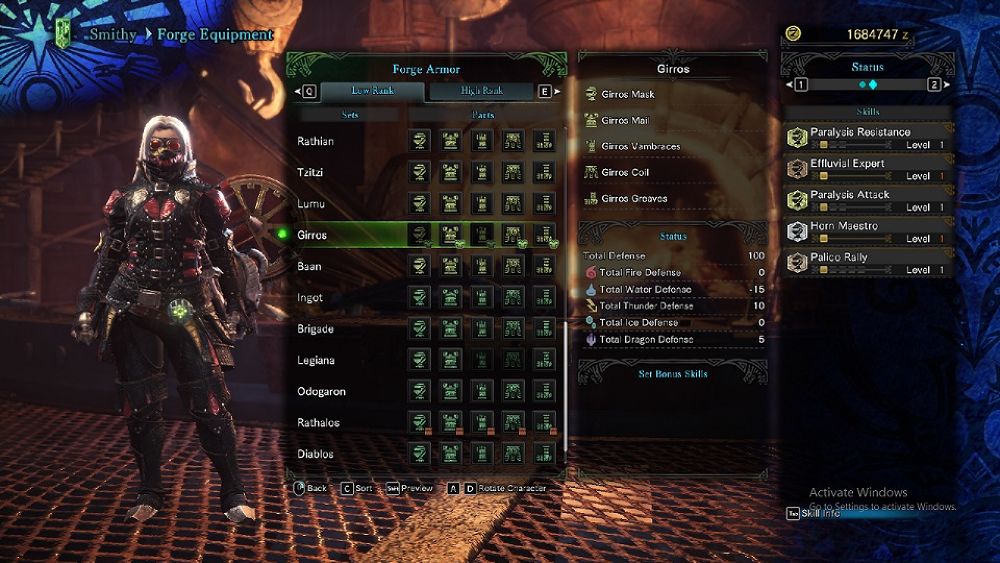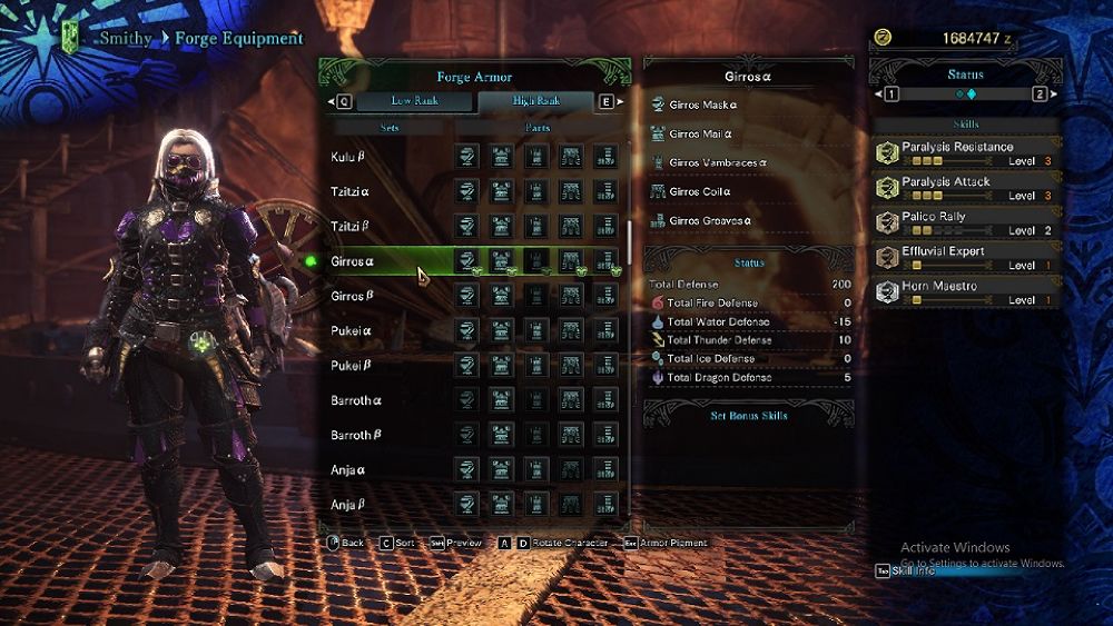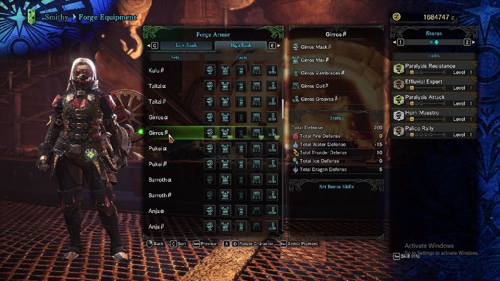 ชุดเกราะของ Great Girros จะมีทั้งหมด 3 Set ด้วยกันคือ Girros Armor Set, Girros Alpha Armor Set (α) และ Girros Beta Armor Set (β)