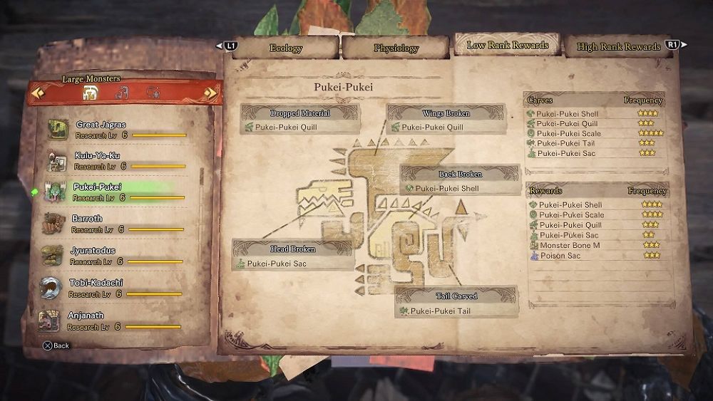 "อัตราการดรอปไอเท็มจาก Pukei-Pukei ในแบบ Low Rank"