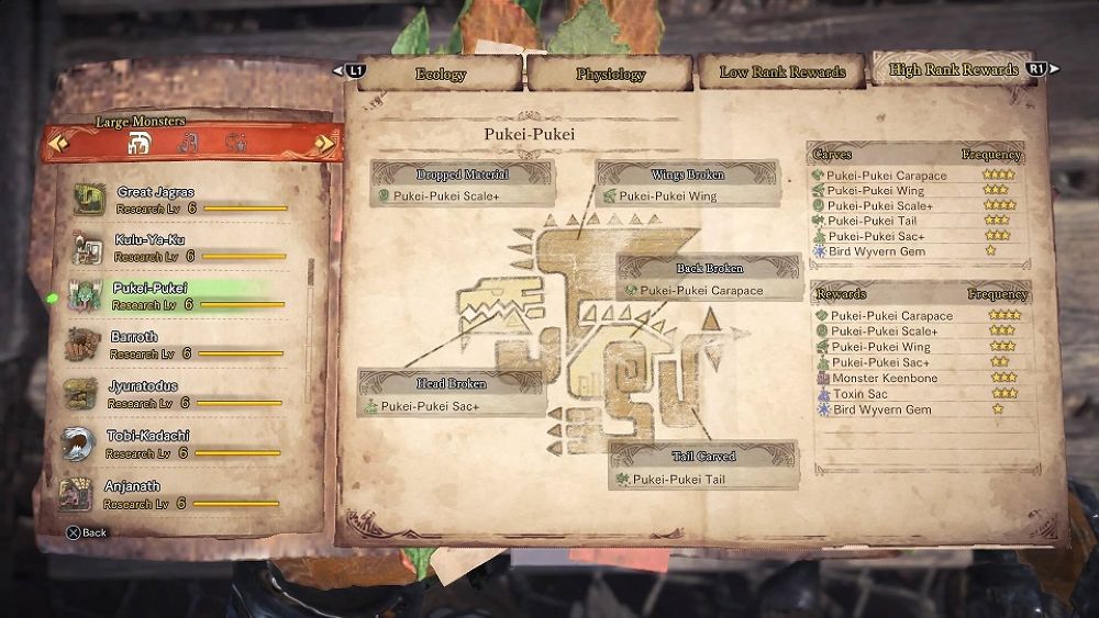 "อัตราการดรอปไอเท็มจาก Pukei-Pukei ในแบบ High Rank"