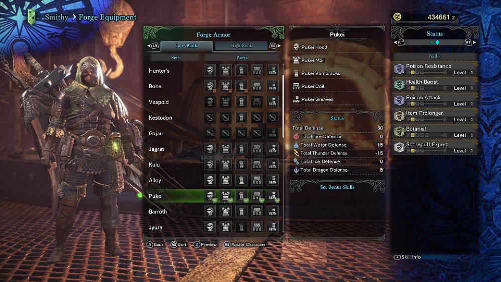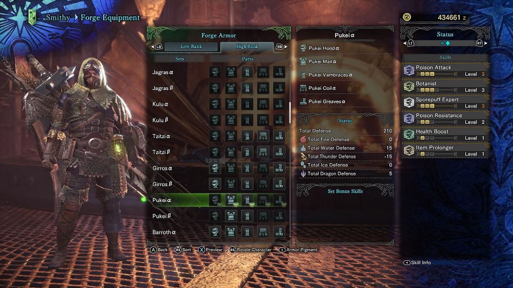 ชุดเกราะของ Pukei-Pukei จะมีทั้งหมด 3 Set ด้วยกันคือ Pukei Armor Set, Pukei Alpha Armor Set (α) และ Pukei Beta Armor Set (β)