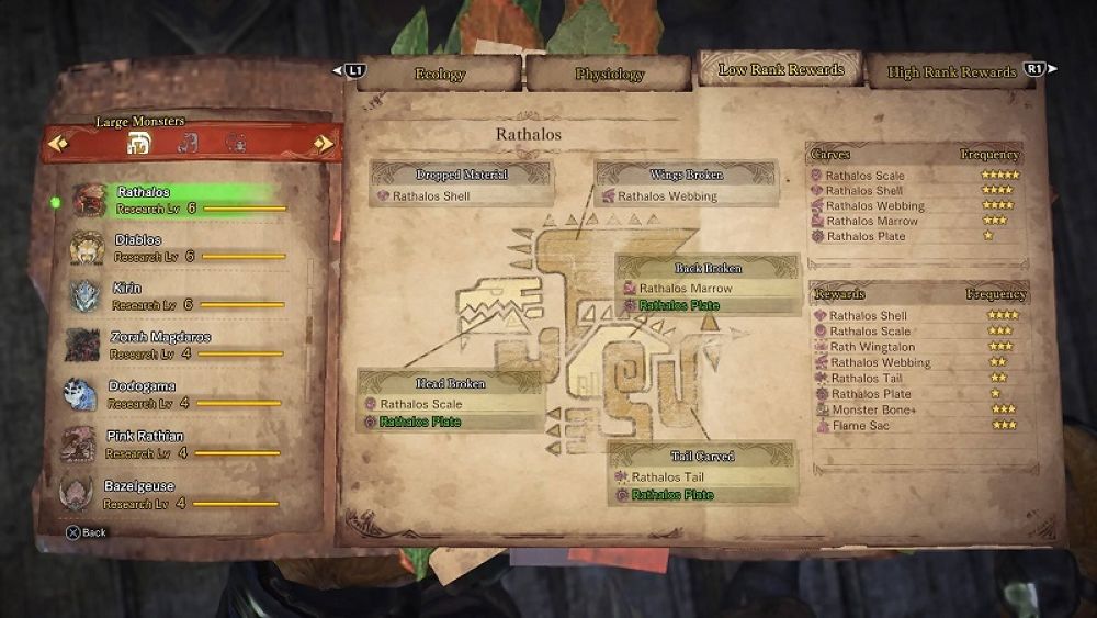 "อัตราการดรอปไอเท็มจาก Rathalos ในแบบ Low Rank"