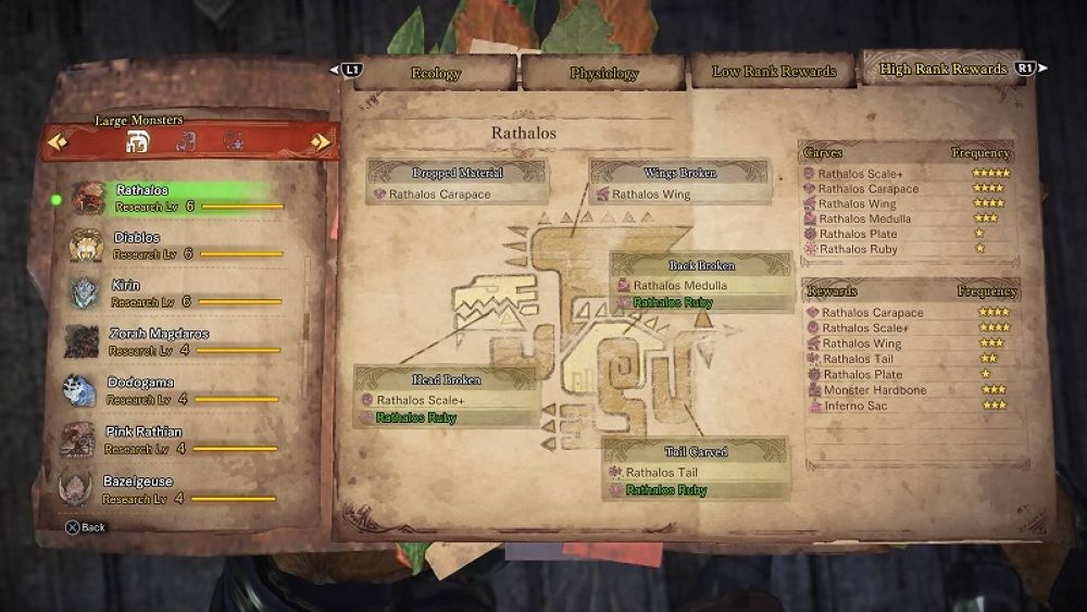 "อัตราการดรอปไอเท็มจาก Rathalos ในแบบ High Rank"