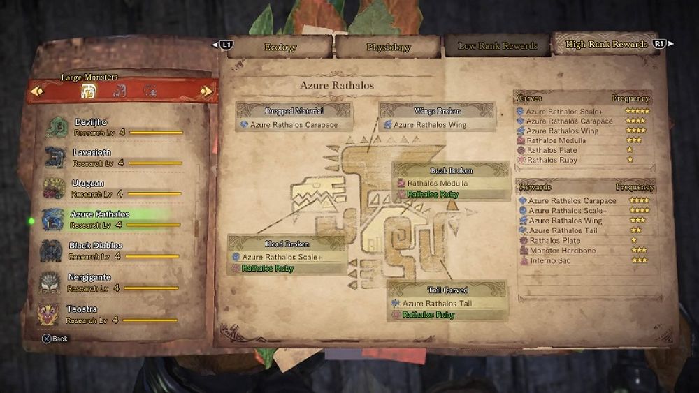 "อัตราการดรอปไอเท็มจาก Azure Rathalos ในแบบ High Rank"