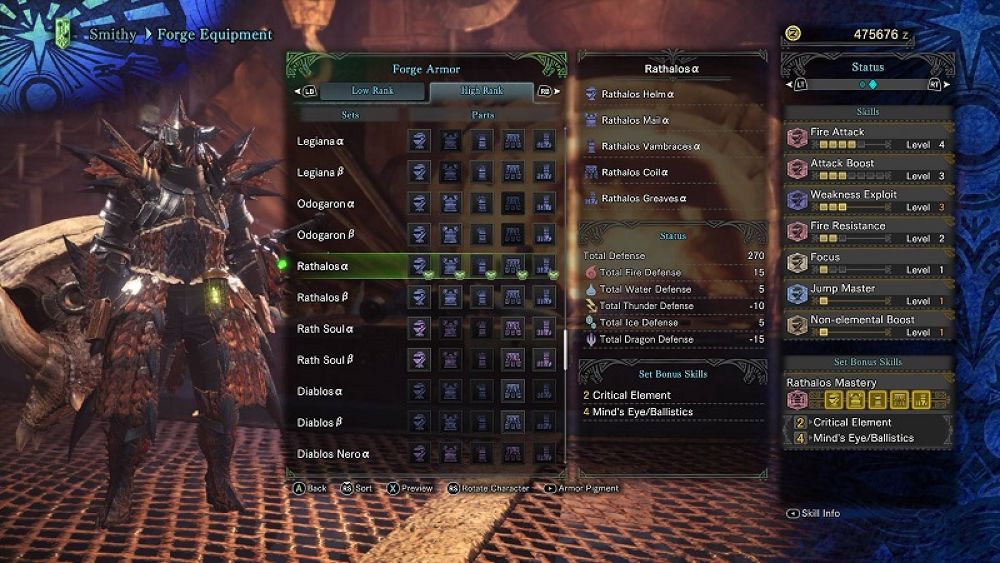 Rathalos Alpha Armor Set (α) เพราะเพิ่มพลังโจมตีและเพิ่มพลังโจมตีธาตุไฟด้วย เรียกว่าเป็นชุดที่เหมาะอย่างมากที่ควรจะมีไว้