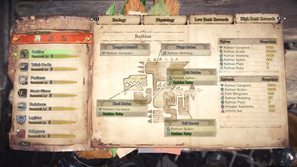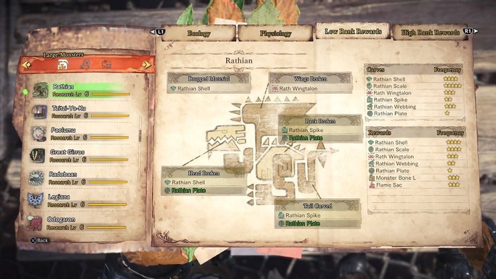 "อัตราการดรอปไอเท็มจาก Rathian ในแบบ Low Rank"