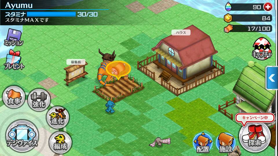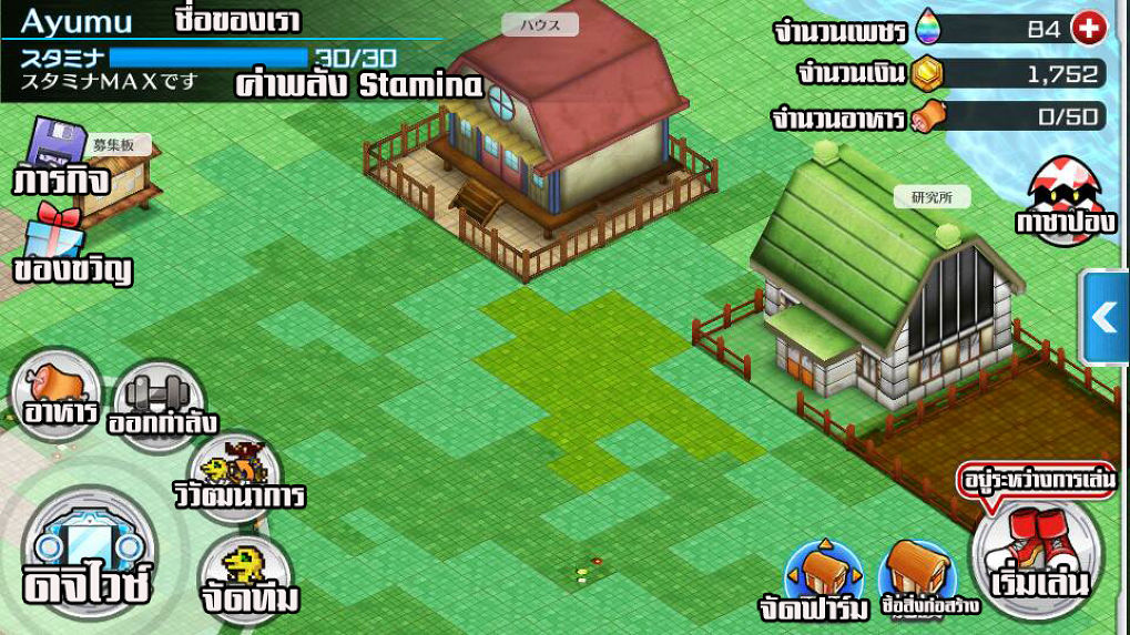 เริ่มต้นมาเกมจะให้เราใส่ชื่อ และเล่าเนื้อเรื่องให้ฟังโดย NPCชื่อว่า “ฮินะ” และสอนวิธีเล่นเบื้องต้นเล็กๆน้อยๆ ซึ่งเราจะทำการซื้อไข่เพื่อฟักดิจิมอนตัวแรกของเรา