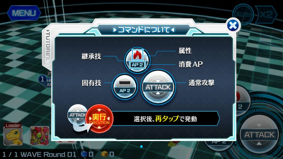 สามารถเลือกโจมตีได้ทั้งแบบธรรมดา และแบบใช้สกิล โดยการโจมตีใช้สกิลจะต้องเสียค่า AP เมื่อชนะแล้วเราจะได้ของตอบแทนเป็น EXP และไอเทมไว้สำหรับอัพเกรด