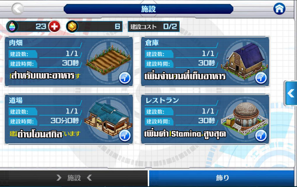 อาหาร นอกจากการทำเควสต์เก็บเลเวลแล้ว ยังสามารถใช้อาหารเพื่อการเพิ่มเลเวลอีกด้วย โดยอาหารจะหาได้จากการสร้างเล้าอาหารนั่นเอง
