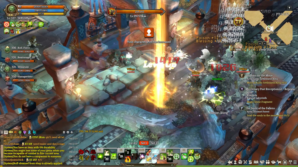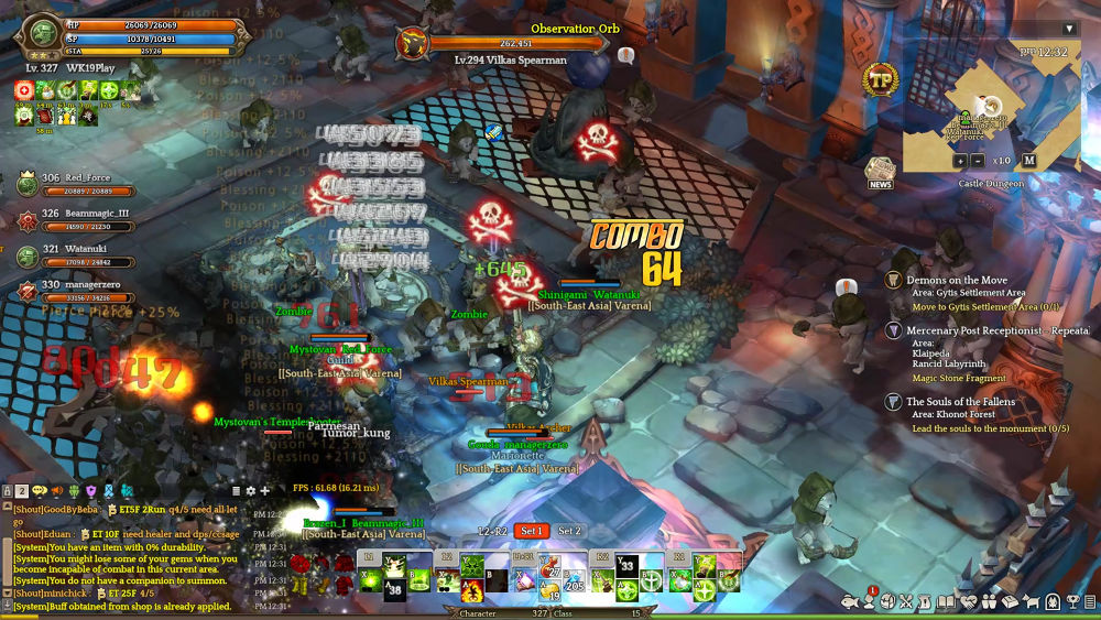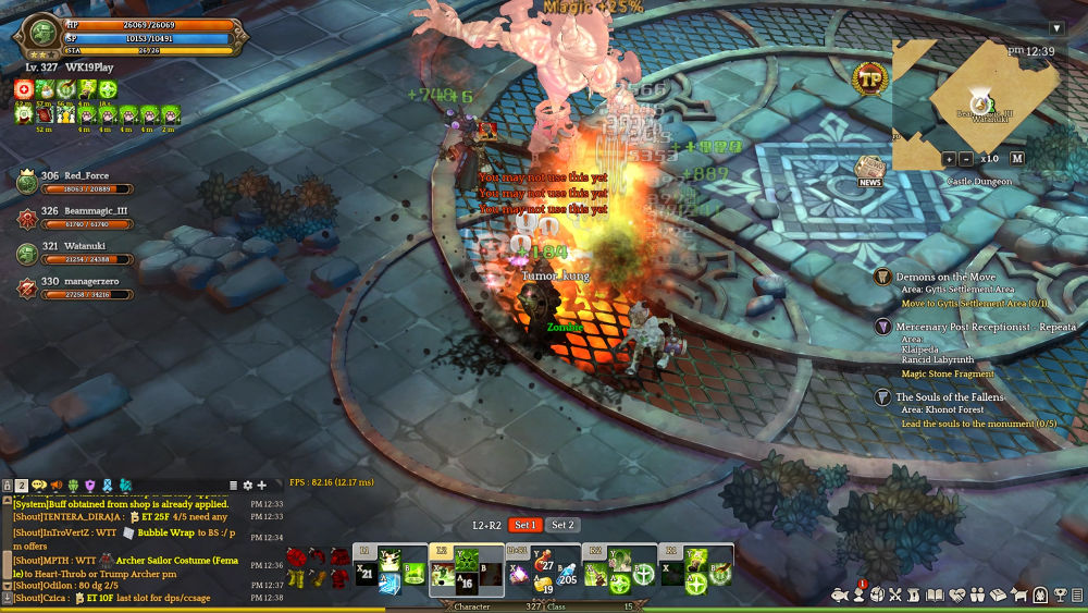- ให้เราเดินมาที่หมายเลข 1 แล้วเดินเลี้ยวซ้ายเข้าหมายเลข 2 ก่อน เคลียร์มอนสเตอร์ทั้งหมดแล้วตีเสาในภาพเท่านั้น