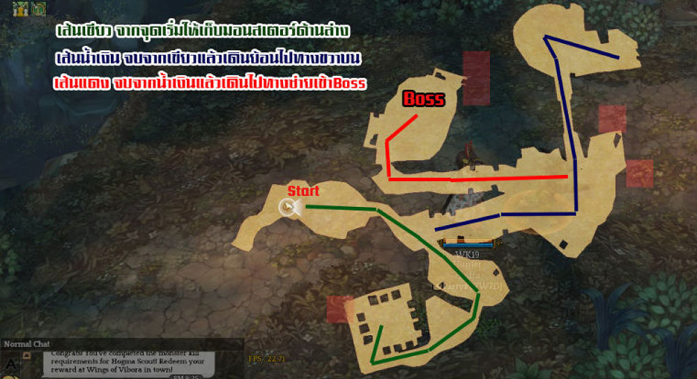 เส้นแรกสีเขียว ให้่เราเดินเคลียร์มอนสเตอร์ตามทางให้หมดทุกตัว เน้นทุกตัวนะครับเพื่อเงินและ EXP ครับ