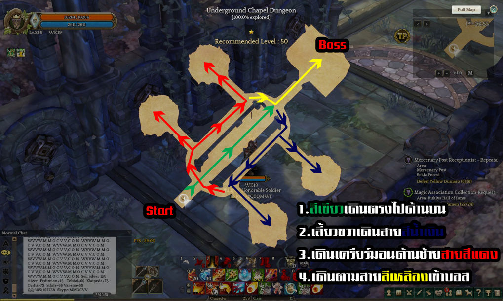 - สายแรกที่เราเดินให้เดินตามสายสีเขียวคือเส้นทางตรงกลางให้เดินมุ่งหน้าขึ้นทางด้านบนไม่ต้องรีบเคลียร์มอนกองน้อยๆอย่าลากเยอะเพราะเนื่องจากเรายังเลเวลน้อยไม่คุ้มที่จะลุยกับมอนสเตอร์กลุ่มใหญ่ ให้เก็บทีละกองไปเรื่อยจนถึงด้านบนสุดให้เลี้ยวขวา