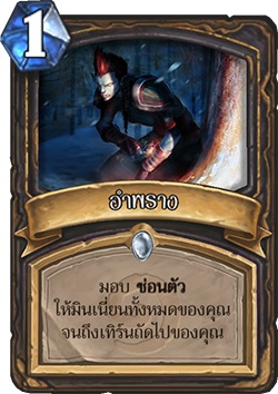 ซ่อนตัวเป็นความสามารถที่ทรงพลังมาก และอาจเป็นเรื่องชวนหงุดหงิดเมื่อต้องเผชิญหน้า โดยเฉพาะในกรณีของบางคลาส สุดท้ายแล้ว Hearthstone ควรเป็นเกมของการแก้ทางกัน และยิ่งเวลาผ่านไป การ์ดอำพรางยิ่งทำให้คลาสอื่นๆ ปฏิสัมพันธ์กับมินเนี่ยนของโร้กได้ยากขึ้น เราเคยคิดจะย้ายโฆษกประมูลแห่งแกดเจ็ตแซน (Gadgetzan Auctioneer) ไปสังกัดกฎอิสระแทน แต่สุดท้ายก็ตัดสินใจย้ายอำพรางเนื่องจากเห็นได้ชัดว่าโฆษกประมูลเป็นการ์ดที่ต้องอาศัยทักษะของผู้ใช้มากเป็นอันดับต้นๆ ของเกม เราคิดว่าระดับพลังของโฆษกประมูลลดลงจากการเปลี่ยนแปลงนี้ และเกมที่มีการเล่นโฆษกประมูลก็จะมีการโต้ตอบของผู้เล่นสองฝ่ายมากขึ้น