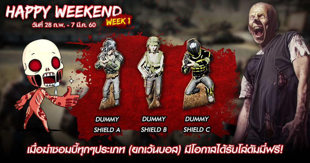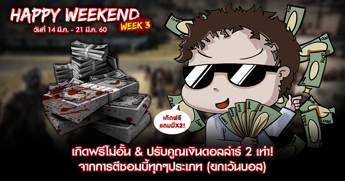 ** หมายเหตุ : ในช่วงระยะเวลากิจกรรม เมื่อตัวละครตายจะกดเกิดได้ฟรีไม่อั้น และจะได้รับเงินดอลล่าเพิ่มขึ้น 2 เท่า
