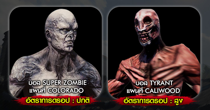 ให้มีโอกาสดรอปกับบอส Super Zombie แผนที่ Colorado, บอส Tyrant และกล่องเหลือง แผนที่ Caliwood
