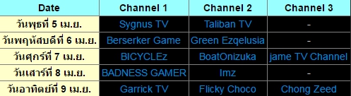- ตารางการถ่ายทอดสดอาจมีการปรับเปลี่ยน สามารถติดตามได้ที่หน้าเว็บไซต์ หรือแฟนเพจ
