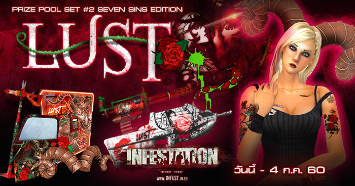 ยังคงสร้างปรากฎการณ์ให้กับวงการ Esportsในบ้านเราอย่างต่อเนื่องกับ กล่องสุ่ม PrizePool ตัวที่ 2 ของรายการ Infestation Thailand Championship 2017ซึ่งตัวล่าสุดนี้มาในธีม "Seven Sins LustCollection" เซ็ตแพะแห่งความราคะ ที่มาพร้อมกับปืนAssault Rifle ใหม่ "Lust FN F2000" ดีไซน์ลายสวย สุดเท่ แฝงไปด้วยพลังแห่งความทะเยอทะยานพร้อมด้วยไอเทมแรร์อื่นๆอีกมากมาย ซึ่งเหมือนเดิมผู้ที่ร่วมสนับสนุนกล่องสุ่ม Prize Pool ตัวนี้นอกจากจะได้รับไอเทมแรร์แล้วรายได้ส่วนหนึ่งจากยอดขาย จะถูกสมทบเพิ่มเข้าไปในยอดเงินรางวัลของการแข่งขัน Infestation Thailand Championship 2017 อีกด้วย