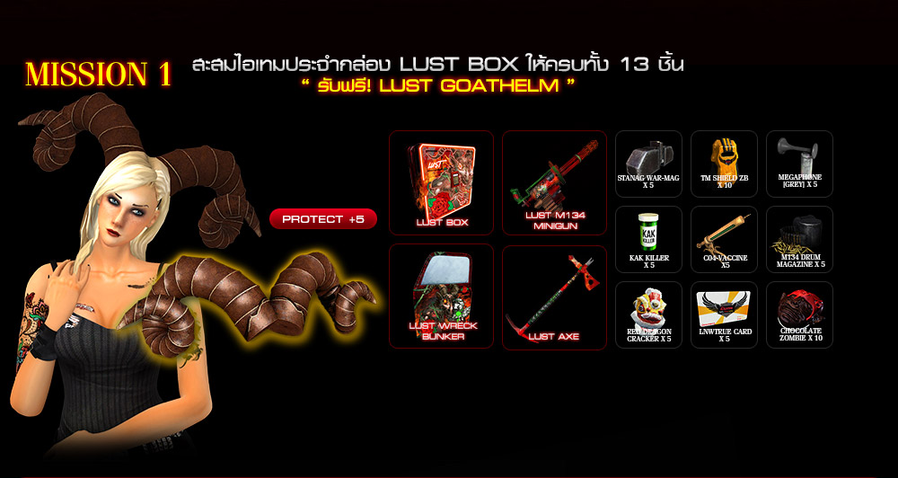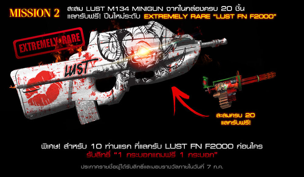 นอกจากนี้ยังมีกิจกรรมพิเศษสำหรับผู้ที่ซื้อกล่องSeven Sins Lust Collection เป็น2 ภารกิจพิเศษสะสมไอเทมตามที่กำหนดแลกรับแรร์ไอเทมLust Goathelm และ ปืน LustFN F2000 ไปเลยแบบฟรีๆ