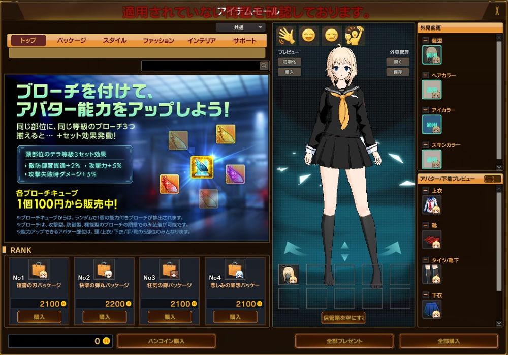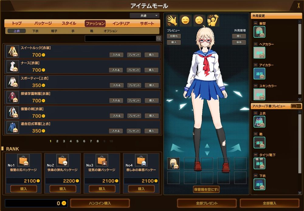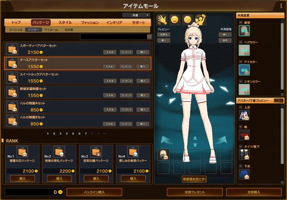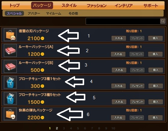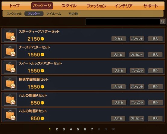 หมวดแพคเกจ : มีทั้งชุดตกแต่งตัวละคร เปลี่ยนเสื้อผ้าหน้าผม ของแต่งบ้านและโบนัสบัพและไอเทมต่างๆมากมายยกเซ็ต