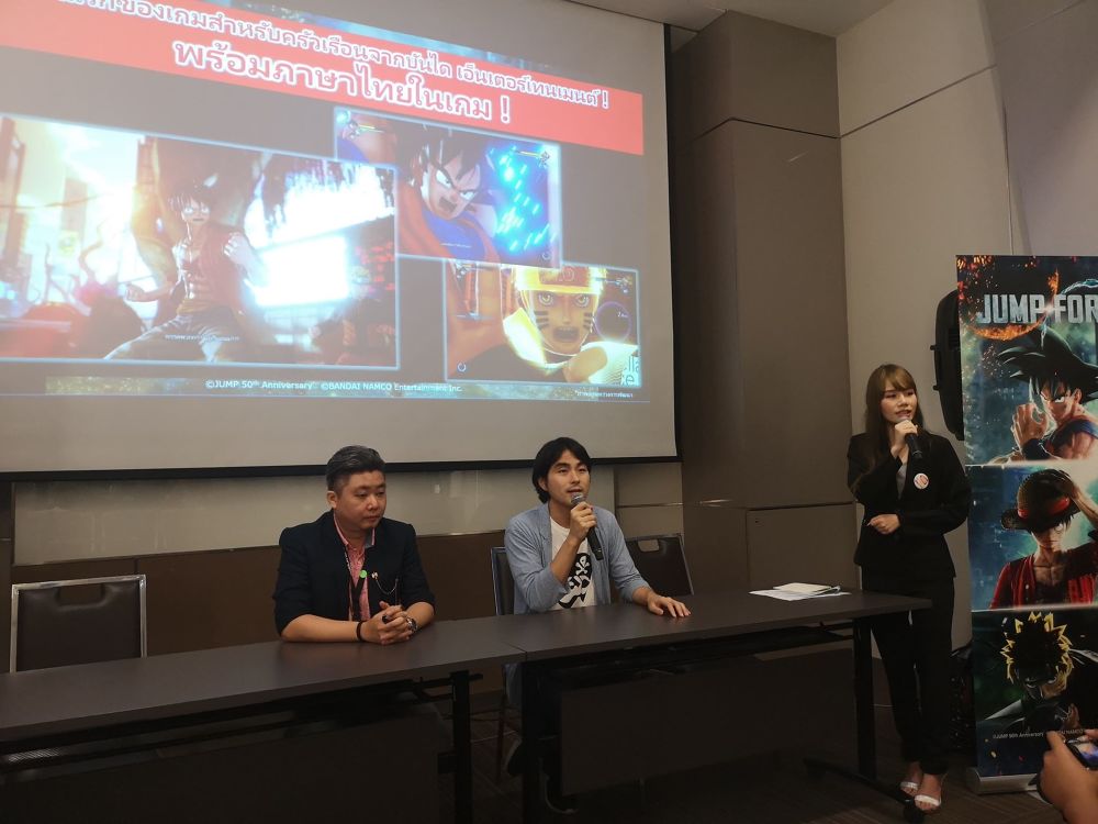 “ประเทศไทยเป็นหนึ่งในตลาดเกมที่เติบโตเร็วที่สุดในภูมิภาคเอเชียตะวันออกเฉียงใต้ ผลักดันโดยกลุ่มนักเล่นเกมที่แข็งแกร่ง และเป็นตลาดสำคัญของเราในภูมิภาคนี้ เราจึงตระหนักถึงศักยภาพและความสำคัญของการแปลเป็นภาษาไทย JUMP FORCE คือจุดเริ่มต้นของการเดินทางครั้งยิ่งใหญ่นี้ และเรามุ่งหวังที่จะเติบโต และสนับสนุนชุมชนนักเล่นเกมในประเทศไทยเรื่อยไป” Rainel Tan ผู้จัดการทั่วไปของ BANDAI NAMCO Entertainment Asia กล่าว