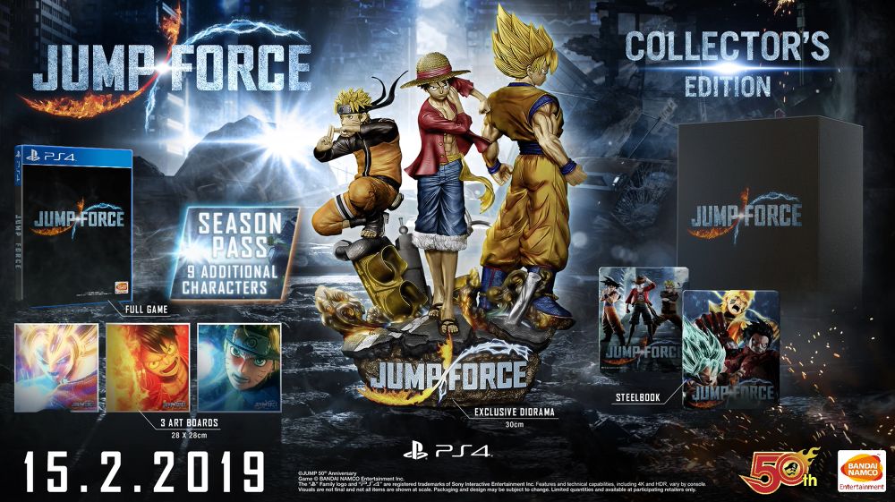 นอกเหนือจากการเปิดเผยสองตัวละครใหม่แล้ว ในวันนี้ยังมีการเปิดเผยเกี่ยวกับ JUMP FORCE รุ่นสำหรับนักสะสมอีกด้วย รุ่นสำหรับนักสะสมประกอบด้วย