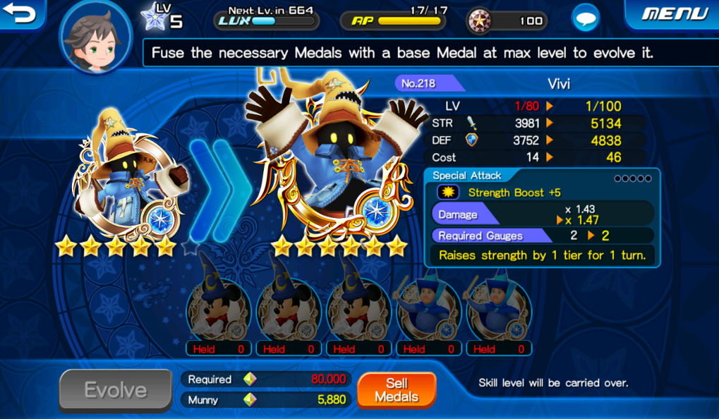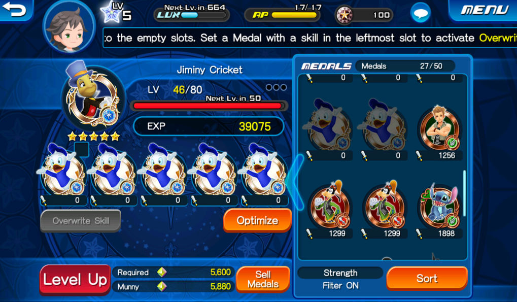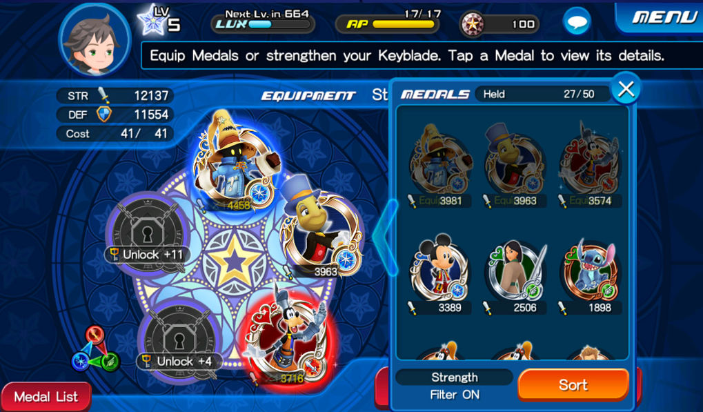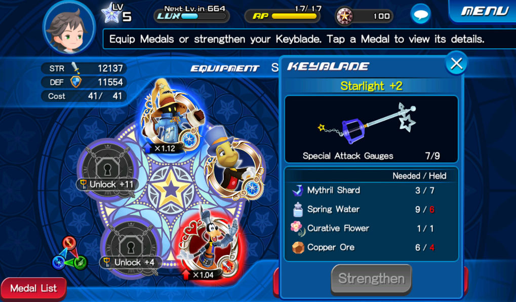โดยตอนแรกเราจะสามารถเซ็ต Medals ได้เพียง 3 ชิ้นเท่านั้น และถ้าหากเราต้องการที่จะเซ็ต Medals ให้ได้มากกว่า 3 ชิ้น เราจำเป็นที่จะต้องปลดล๊อคช่องที่เหลืออีก 2 ช่องเสียก่อน โดยการจะปลดล๊อคช่องเหล่านี้ได้ เราจำเป็นที่จะต้องทำการ "ตีบวกคีย์เบลด" ของเราเสียก่อน ซึ่งการตีบวกในแต่ละระดับ จะใช้ไอเทมจนไปถึงจำนวนที่แตกต่างกันออกไป แต่ถ้าเราตีบวกสำเร็จ เราก็จะได้พลังโจมตีที่แข็งแกร่งขึ้นมากกว่าเดิมอีกด้วย
