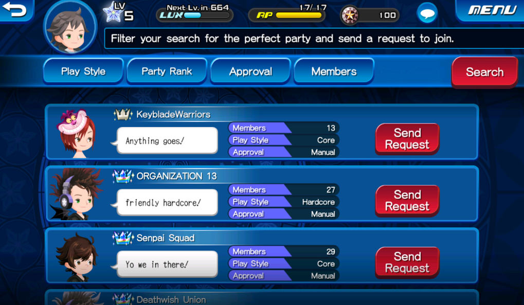 นอกจากระบบต่างๆ ที่กล่าวมาในขั้นต้นแล้ว ตัวเกมยังมี "ระบบปาร์ตี้" ที่เราสามารถจะเข้าร่วมกับปาร์ตี้อื่นๆ ที่ผู้เล่นอื่นสร้างขึ้น หรือเราจะสร้างปาร์ตี้ของเราขึ้นมาเองก็ได้ แต่ทั้งนี้ทั้งนั้นเจ้าระบบปาร์ตี้นี้ จะถือเป็นดั่งตัวกลางที่จะทำให้ตัวเรา และเพื่อนๆ สามารถผจญภัยไปยังใลกดิสนีย์พร้อมๆ กันได้