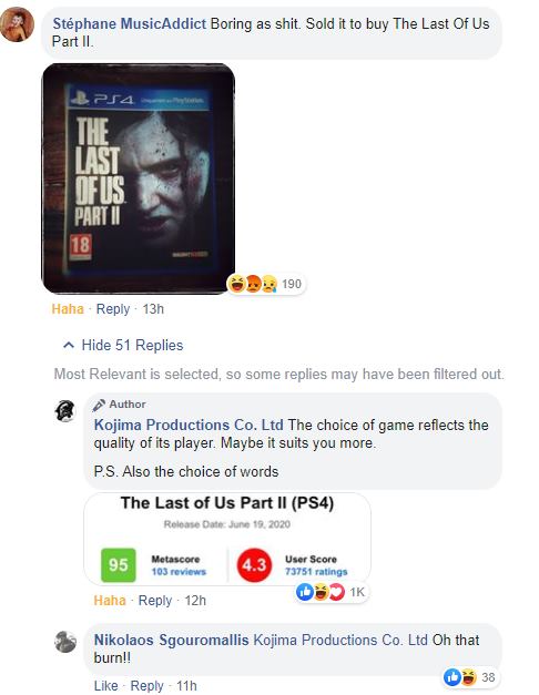 การเลือกเล่นเกมสักเกมก็จะสะท้อนถึงคุณภาพของผู้เล่นนั้นๆ บางทีมัน [The Last of Us Part II] อาจจะเหมาะกับคุณก็เป็นได้ ป.ล. การเลือกใช้คำพูดก็ด้วยเช่นกัน - แปลไทยจากเพจ Kojima Productions