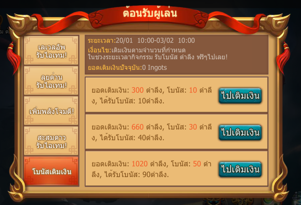 เติมเงินถึงที่กำหนดในช่วงเวลากิจกรรมเพื่อรับโบนัสฟรีๆ