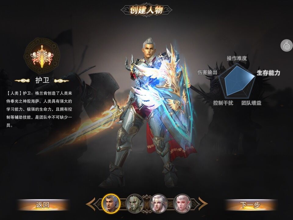 เผ่ามนุษย์ - พลังชีวิตและพลังโจมตีค่อนข้างสูง บังคับง่าย ความเร็วปานกลาง สามารถเลือกเล่น พาลาดิน ผู้ใช้ดาบและโล่เป็นอาวุธ ปกป้องเพื่อนๆด้วยโล่ และใช้สกิลโจมตีด้วยดาบสั้น กลาดิเอเตอร์ ผู้ใช้ดาบคู่ฟาดฟันศัตรูอย่างดุดัน โจมตีศัตรูทั้งหมดอย่างรวดเร็ว