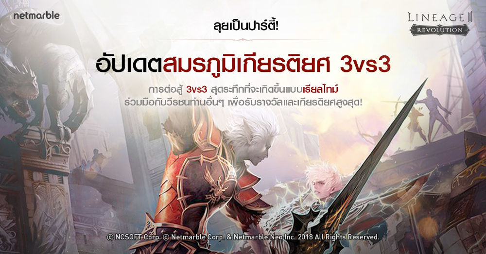 Lineage II Revolution ฉลองครบ1 ปี เปิดฉากสมรภูมิ 3vs3!