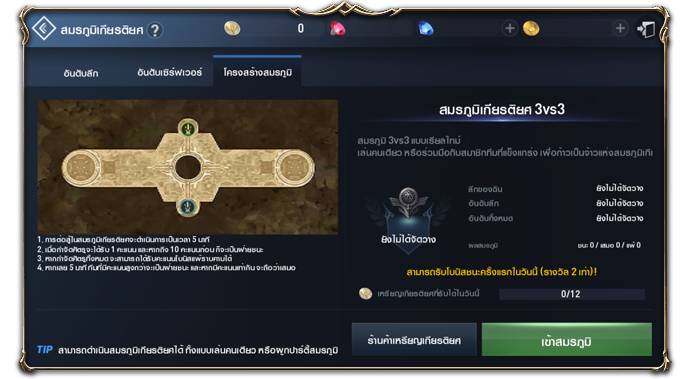 คอนเทนต์ที่ทุกคนตั้งตารอกันที่สุดก็คือ สมรภูมิเกียรติยศ 3vs3 ที่จะเปิดให้เหล่าผู้กล้าท้าประลองฝีมือกันทุกวันอังคารและวันพฤหัสบดี ในพื้นที่สมรภูมิจะมีบัฟพิเศษตามจุดต่างๆ ดังนั้นหัวใจสำคัญในการชนะไม่ใช่แค่พลัง แต่ยังเป็นการสื่อสารและกลยุทธ์ในการเล่นของทีมอีกด้วย ผู้เล่นจะได้รับรางวัลตามระดับเลเวลลีกที่ทำได้เมื่อจบซีซั่น และจะได้รับเหรียญเกียรติยศจากการชนะการต่อสู้เพื่อนำไปแลกไอเทมต่างๆ ได้อีก