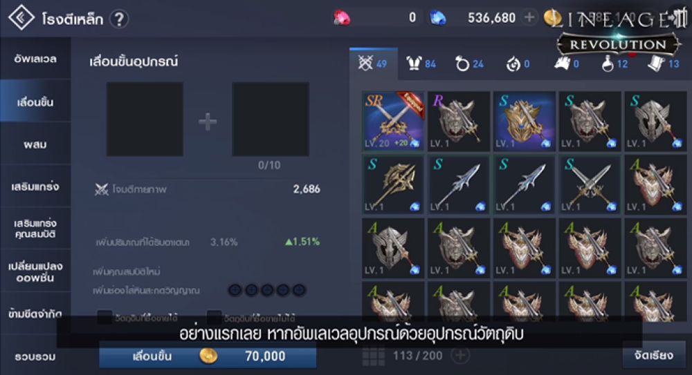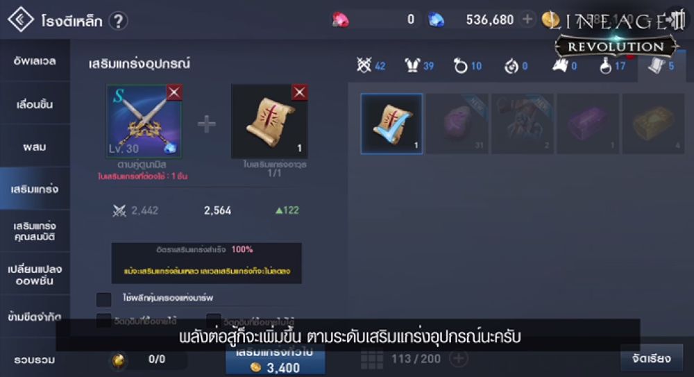 3.การอัพเลเวล,การเสริมแกร่ง,การเลื่อนขั้น,การผสมอุปกรณ์