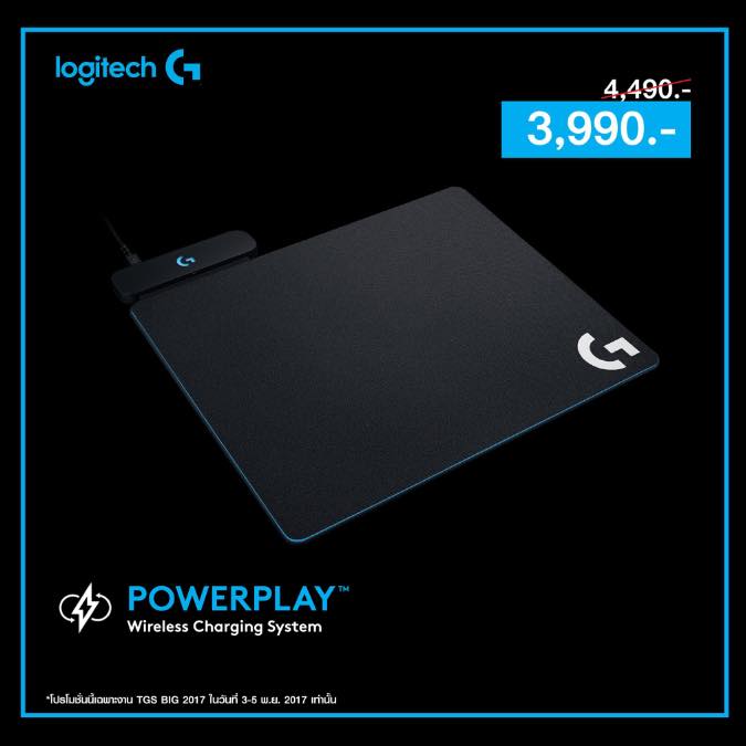 อีกตัวหนึ่งที่ถูกเปิดตัวมาพร้อมกับ Gaming Mouse รุ่นใหม่นั้นก็คือ อุปกรณ์ที่เรียกว่า G Power Play นั้นเองโดยจะมีลักษณะเหมือนแผ่นรองเมาส์เป็นแท่นชาร์จแบตสำหรับ G703 และ G903 แผ่นตัวนี้นั้นจะมีขนาด 275mm X 320mm โดยจะเท่ากับแผ่นรองเมาส์ขนาด Size S ทั่วไปโดยวิธีการใช้ก็คือการนำแผ่นรองเมาส์มาวางทับ G Power Play อีกที โดยเจ้าตัว G Power Play นั้นจะมีการเชื่อมต่อแบบ USB ไว้เชื่อมต่อ Computer หรือ Notebook ได้อย่างสบายๆ