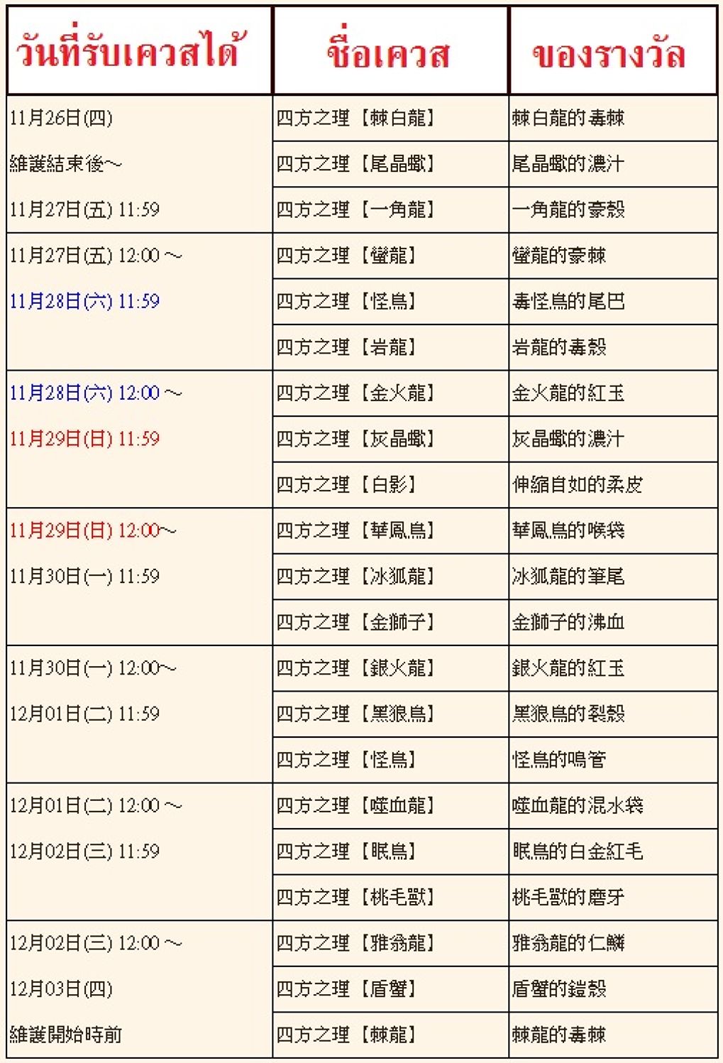 - เควสจะมีให้เล่นวันละ 3 เควส 1 เควสมีระยะเวลาเล่นเพียง 1วันเท่านั้น