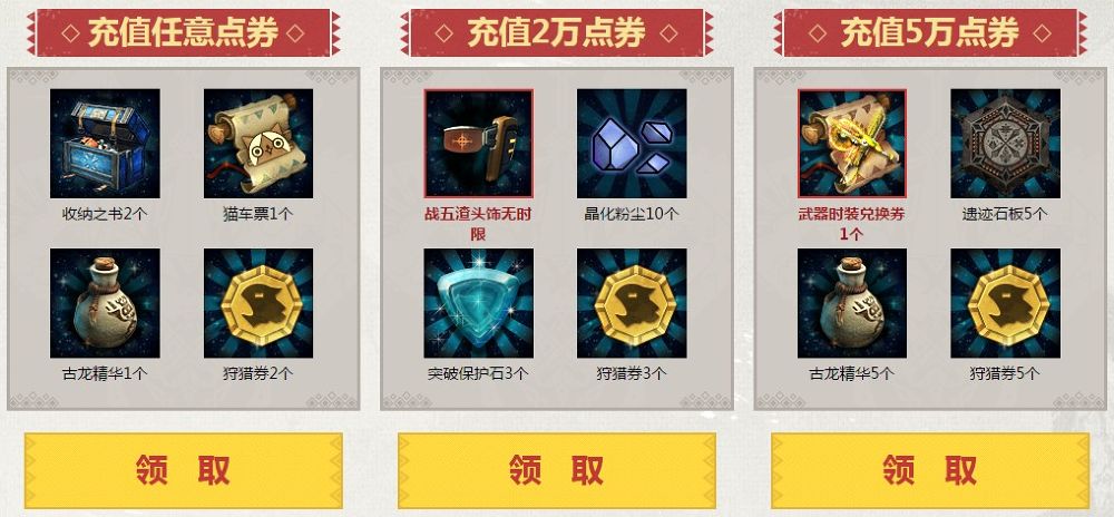 เติมครบ 5 หมื่นแต้ม ตั๋วแลกอาวุธแฟชั่น 1 อัน เหรียญสุ่มกาชา 5 อัน เหล้าเลือดมังกร 5 อัน เหรียญ 5 อัน