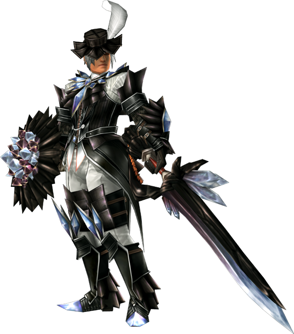 ดาบและโล่เป็นอาวุธพื้นฐานซึ่งติดตัวผู้เล่นมาตั้งแต่แรก โดดเด่นเรื่องความคล่องแคล่วใช้งานง่าย ใช้การโจมตีต่อเนื่องที่รวดเร็ว ใช้ได้ดีทั้งรุกและรับ ข้อเสียเพียงอย่างเดียวก็คือพลังโจมตีค่อนข้างต่ำ แต่ก็ทดแทนด้วยคุณสมบัติเสริมอย่างโจมตีด้วยธาตุได้รุนแรง  และทำให้ติดสถานะผิดปรกติอย่างหลับ ติดพิษ อัมพาตได้ดีกว่าอาวุธชนิดอื่นๆ