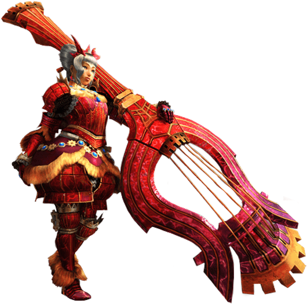เครื่องดนตรีขนาดยักษ์ซึ่งเป็นมรดกทางอารยธรรมโบราณ นอกจากจะใช้หวดโจมตีได้หนักหน่วงเหมือนค้อนใหญ่ ยังสามารถใช้บทเพลงเสริมพลังให้ตนเองและเพื่อนๆได้อีกด้วย ทั้งบัพทั้งฮีล เรียกได้ว่าสารพัดประโยชน์เลยทีเดียว แลกกับการต้องเก็บตัวโน๊ต และระหว่างบรรเลงเพลงก็ไม่สามารถป้องกันตนเองหรือเคลื่อนไหวได้ จะทุบจะเป่าก็ต้องมองรอบๆให้ดี