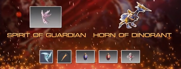 - Horn of Dinorant x1 สัตว์ขี่ที่ทำให้ได้รับ Bonus ค่าพลังมากมายและสกิลพิเศษ ใช้งานได้เมื่อตัวละคร Level 110