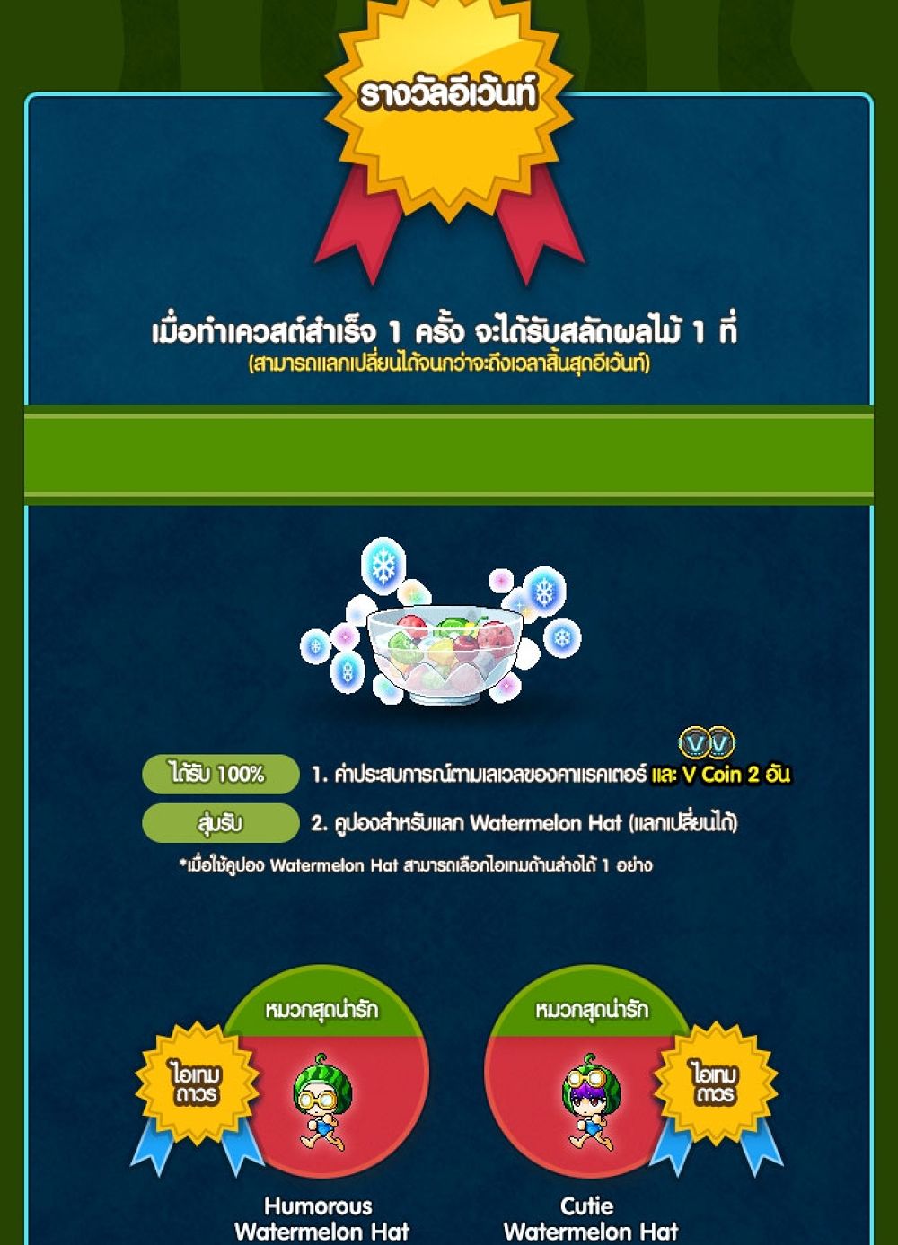 - รีเซ็ทจำนวนครั้งในการทำสลัดผลไม้และจำนวนครั้งที่ทำเควสต์ทุกวันเวลา 00.00 น.