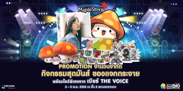 พบกับ MapleStory และกิจกรรมสุดสนุกจาก Nexon ของแจกมากมายได้ที่งาน THAILAND GAME SHOW BIG FESTIVAL 2017 วันที่ 3 - 5 พฤศจิกายน 2560 ณ ชั้น 5 สยามพารากอน