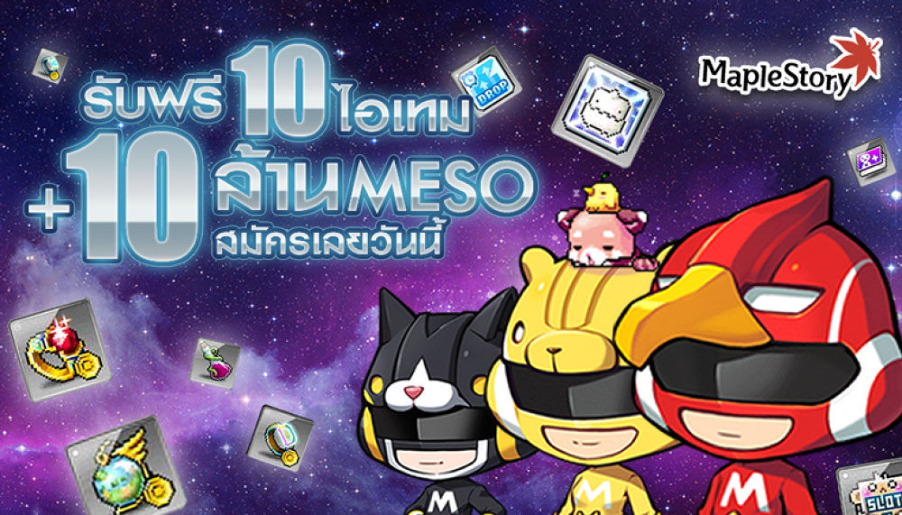 - 2. รับฟรี 10 ไอเทม และ 10 ล้าน Meso (วันนี้ – 6 มี.ค. 2018หรือจนกว่าจะมีการเปลี่ยนแปลง)