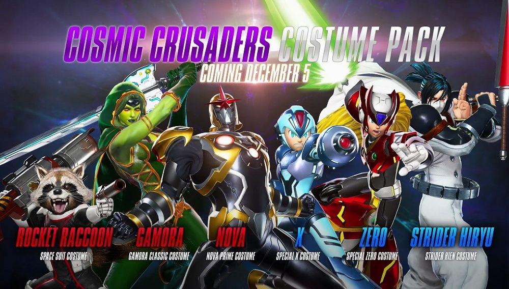 "Cosmic Crusaders Costume Pack" จะเป็นชุดคอสตูมที่จะอัพเดทให้กับตัวละคร Rocket Raccoon, Gamora, Nova, X, Zero และ Strider แล้วอีกชุดก็คือ