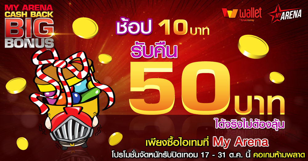 My Arena CashBack BigBonus รับเงินคืน 50 บาท ได้จริงไม่ต้องลุ้น! แค่ซื้อซื้อไอเทม 10 บาทขึ้นไป