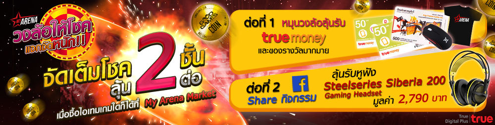 My Arena ร่วมกับ True Money Wallet  แจกหนัก จัดเต็ม ช้อปไอเทมที่ My Arena Market ตั้งแต่ 10 บาทขึ้นไป รับคืน 50 บาท ได้จริงไม่ต้องลุ้น ฟรี!!!!!