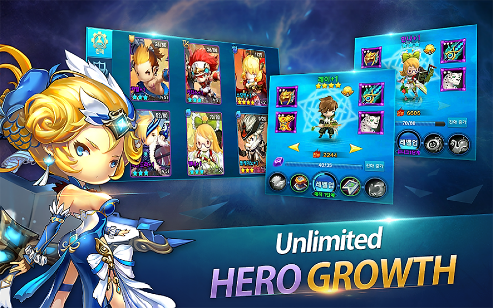 เราสามารถสร้างทีมด้วยตัวละครได้มากถึง 5 ตัว ระบบในเกมก็จะมี PVP กิลด์วอร์ ดันเจี้ยน และล่าบอส รวมไปถึงโหมดเนื้อเรื่องที่มีให้เล่นมากถึง 200 ด่านเลยเชียวล่ะ นอกจากนี้เราสามารถเลือกสวมใส่อาวุธและเลือกอัพสกิลเพื่อพัฒนาตัวละครของเราได้อีกด้วย
