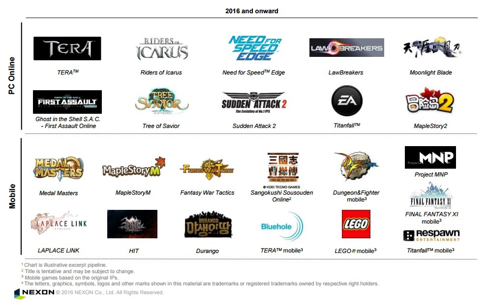 นอกจากนี้ทาง NEXON ยังเปิดเผยข้อมูลเกมออนไลน์ที่จะเปิดให้บริการภายในปีนี้อีกด้วย ซึ่งก็จะมีทั้งเกมบนเวอร์ชั่น PC Online และ Mobile งานนี้ใครที่รอคอยเกมอะไรอยู่เตรียมตัวให้พร้อมกันเลยค่ะ ส่วนตัวอาเจ๊นัทกำลังรอเกม Need for Speed Edge, Sudden Attack 2 และ Titanfall Online ส่วนเกมบนมือถือคงหนีไม่พ้น MapleStory Mobile เพราะภาคนี้อ้างอิงรายละเอียดตัวเกมจากเวอร์ชั่นเดิมแทบจะทั้งหมดเลย ก็ต้องมาดูกันว่าในปีนี้ทาง NEXON จะมีการงัดไม้เด็ดเอาชนะใจเกมเมอร์ทั่วโลกได้เหมือนปีที่ผ่านมาหรือเปล่า